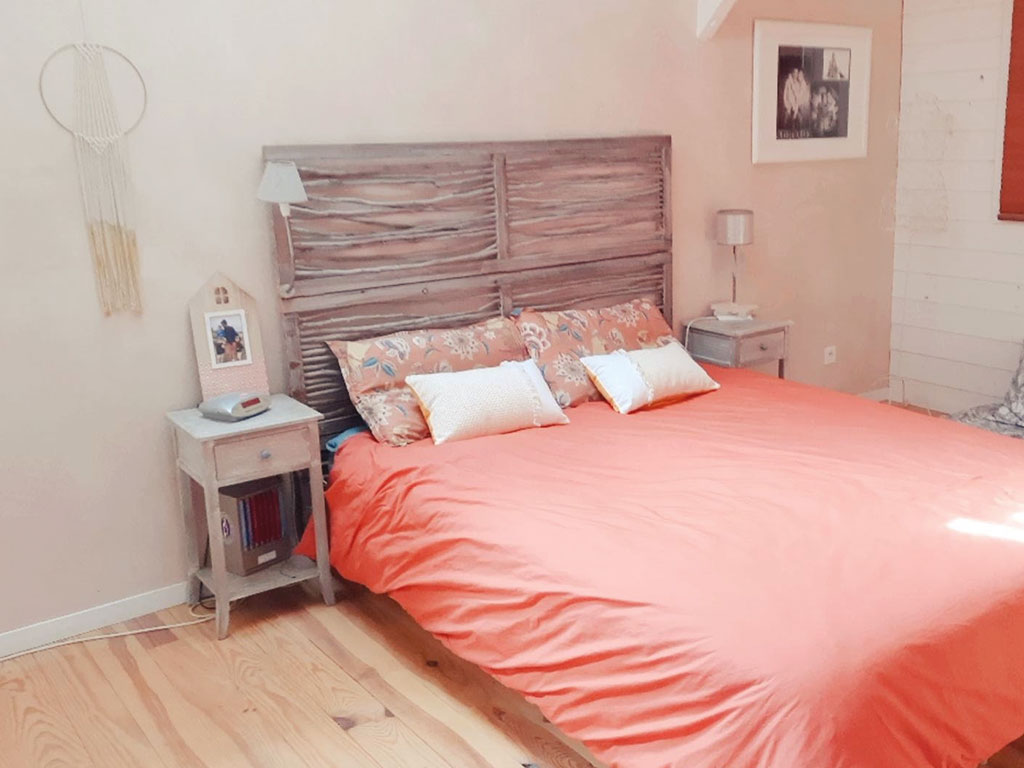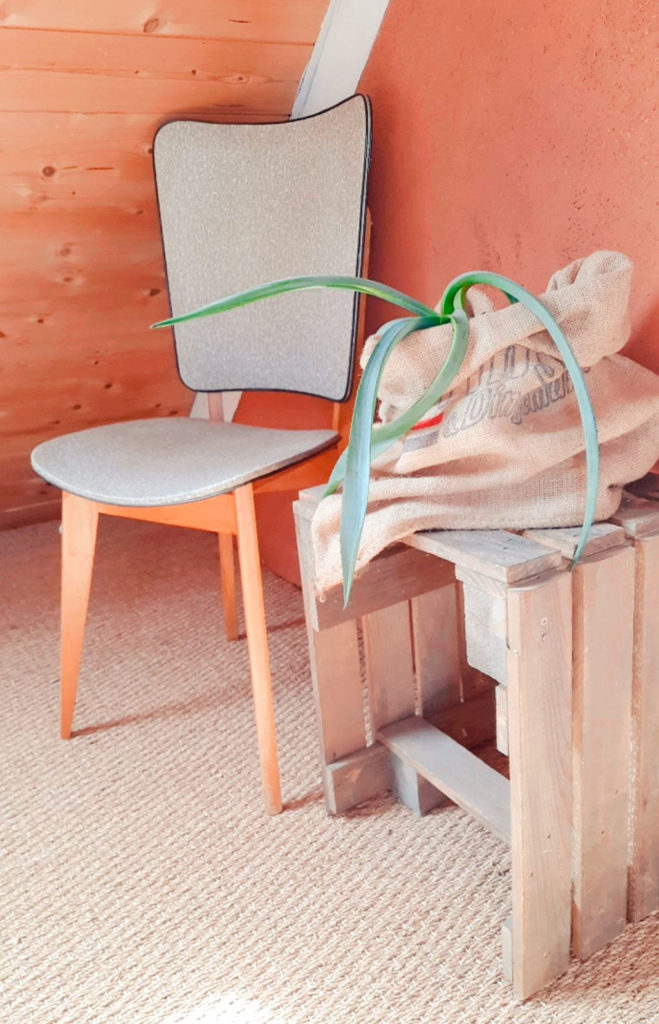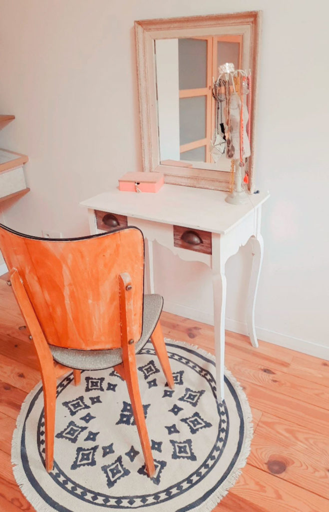 Question déco, Marie et Nicolas ont aussi beaucoup chiné, ils aiment courir les brocantes pour aménager l’ensemble de la maison : chaises, caisse en bois, coiffeuse…