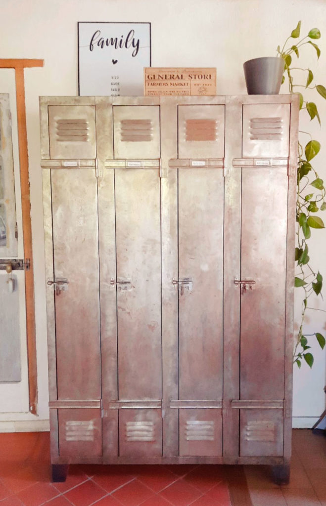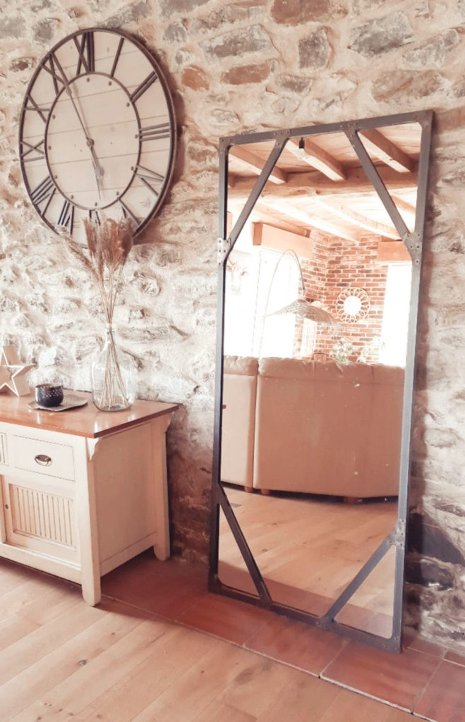 Nicolas a aussi un grand talent de bricoleur, il a rénové ou fabriqué certains meubles et objets comme le miroir industriel, la table basse du salon, les casiers vestiaires…