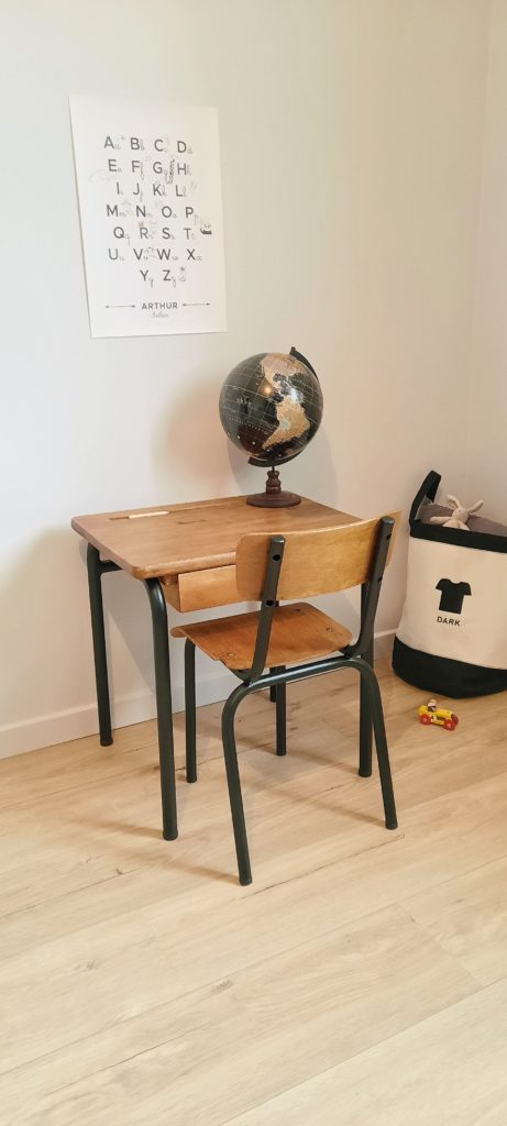 J’ai eu l’idée de chiner un bureau d’écolier vintage pour la chambre du petit de 5 ans, j’ai toujours rêver d’en avoir un comme quand j’étais à l’école !